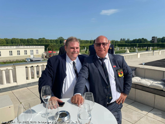 Am Wochenende vom 13.06.25 bis zum 15.06.25 waren Detlef May und Lars-Eike Brandes für unseren Bezirk als Delegierte zur Landesverbandstagung in Hannover unterwegs. Am Freitag Abend wurde das Wochenende mit einer Feier zum 100 jährigen Bestehen der DLRG Hannover mit einem großen Grillabend auf dem Gelände des Bezirkes Hannover-Stadt gebührend gefeiert. Am Samstag folgten dann die Landesverbandstagung Teil 1 und 2 mit den Berichten des Vorstandes. Samstag Abend ging es dann gemeinsam in unserer Ausgehuniform ins Schloß Herrenhausen, hier feierten wir das 100 jährige Bestehen des Landesverbandes Niedersachsen, mit Reden von unserem Ministerpräsidenten Olaf Lies, unserer Präsidentin der DLRG Ute Vogt und unserem scheidenden LV Präsidenten Oliver Liersch, der an diesem Abend das Bundesve ... Mehr erfahren